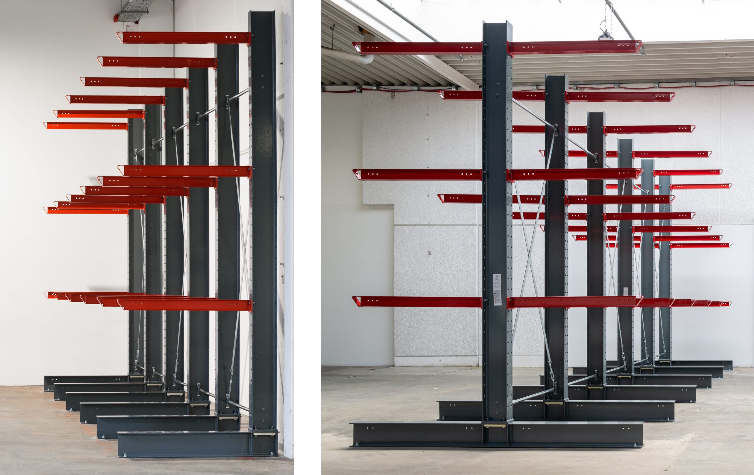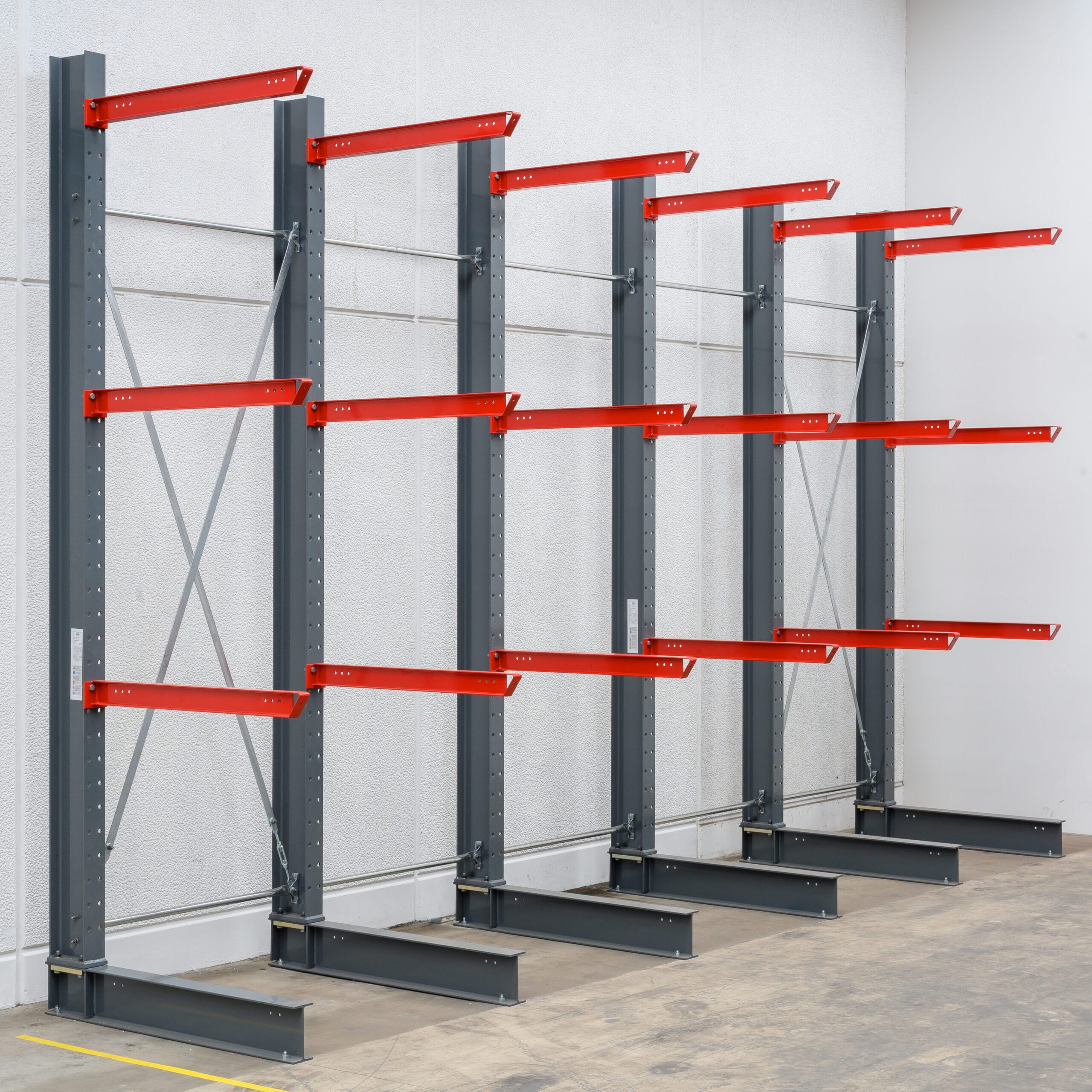 Die Montage erfolgt unkompliziert und ohne spezielles Werkzeug. Bei Bedarf kann es fest im Boden verankert werden, um maximale Stabilität zu gewährleisten. Mit dem staplerbedienten Kragarmregal erhältst du ein langlebiges und anpassungsfähiges Lagersystem, das deine Waren sicher und effizient lagert.