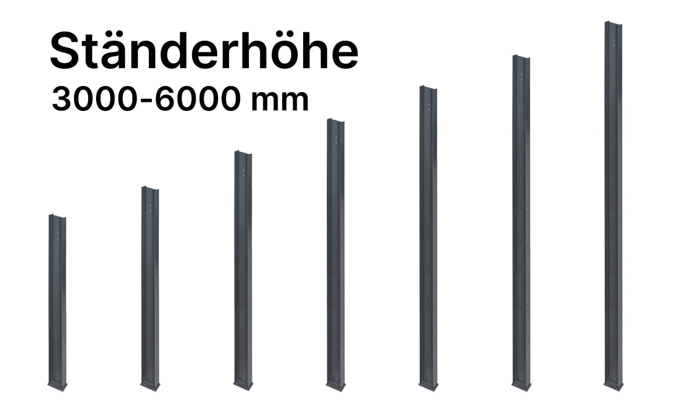Gesamthöhe RegalWähle die Gesamthöhe deines staplerbedienten Kragarmregal.